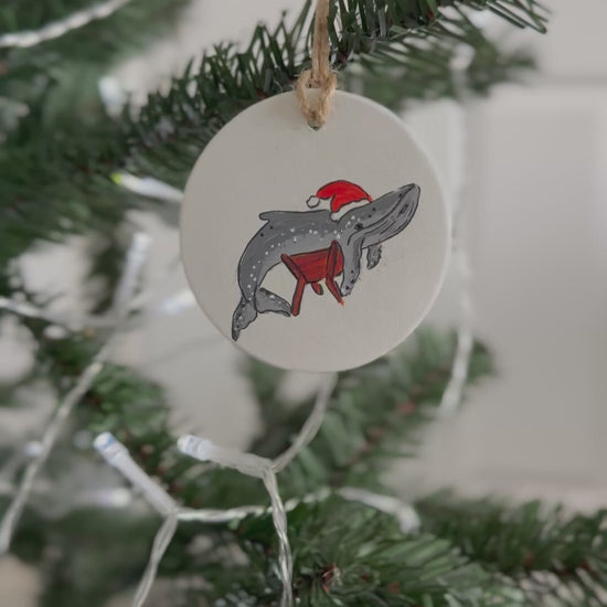 The ceramic discs are painted with marine life animals on them. Perfect for hanging on your Christmas tree, decorating a coastal-themed home, or gifting to an ocean lover.