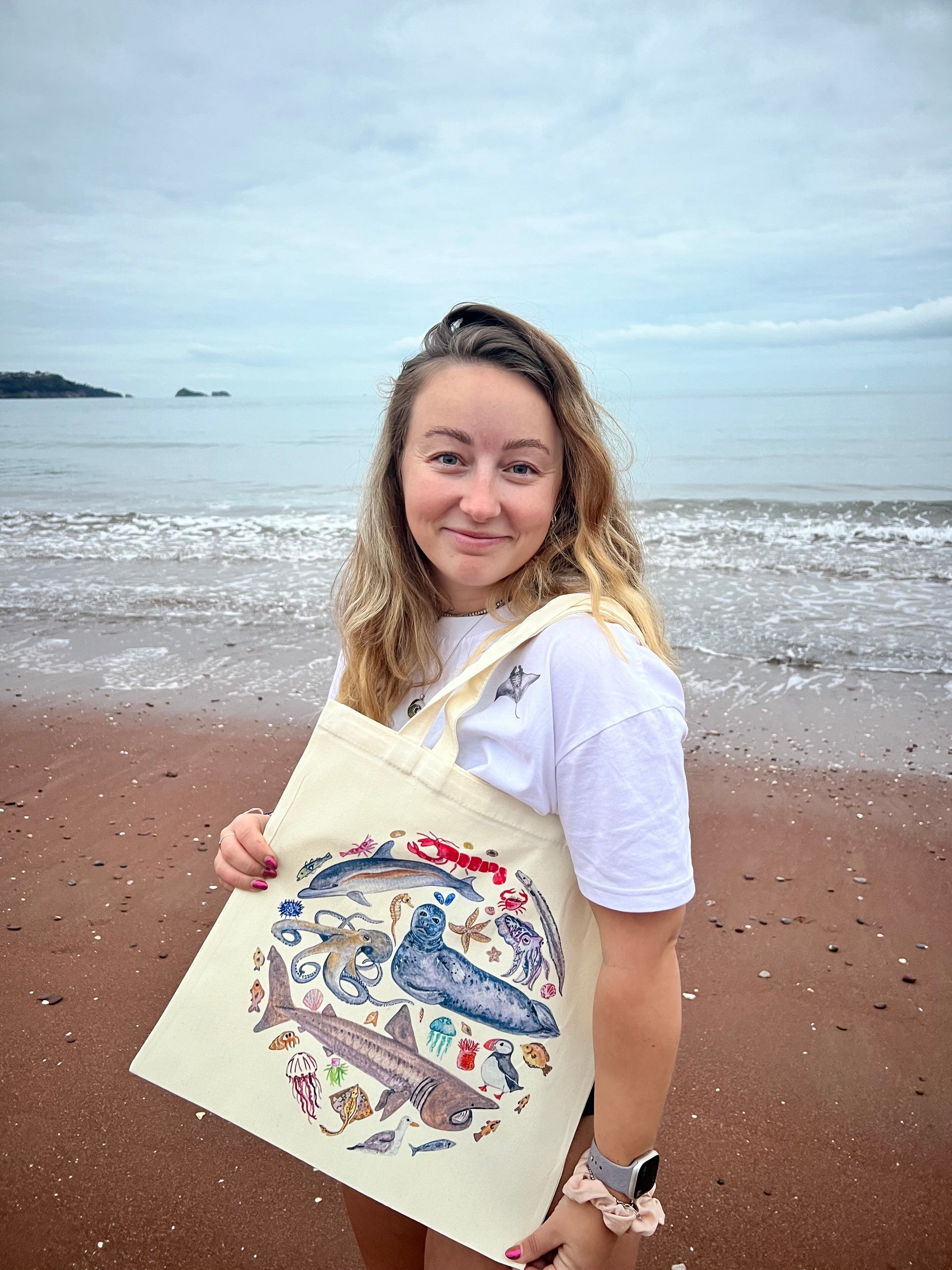 People have been saying for ages you should get your art printed, I’d wear it, I’d love it on a beach bag… well, today is your lucky day because I did it! I am beyond obsessed. Seeing my artwork on a bag is actually giving me life 🩵
