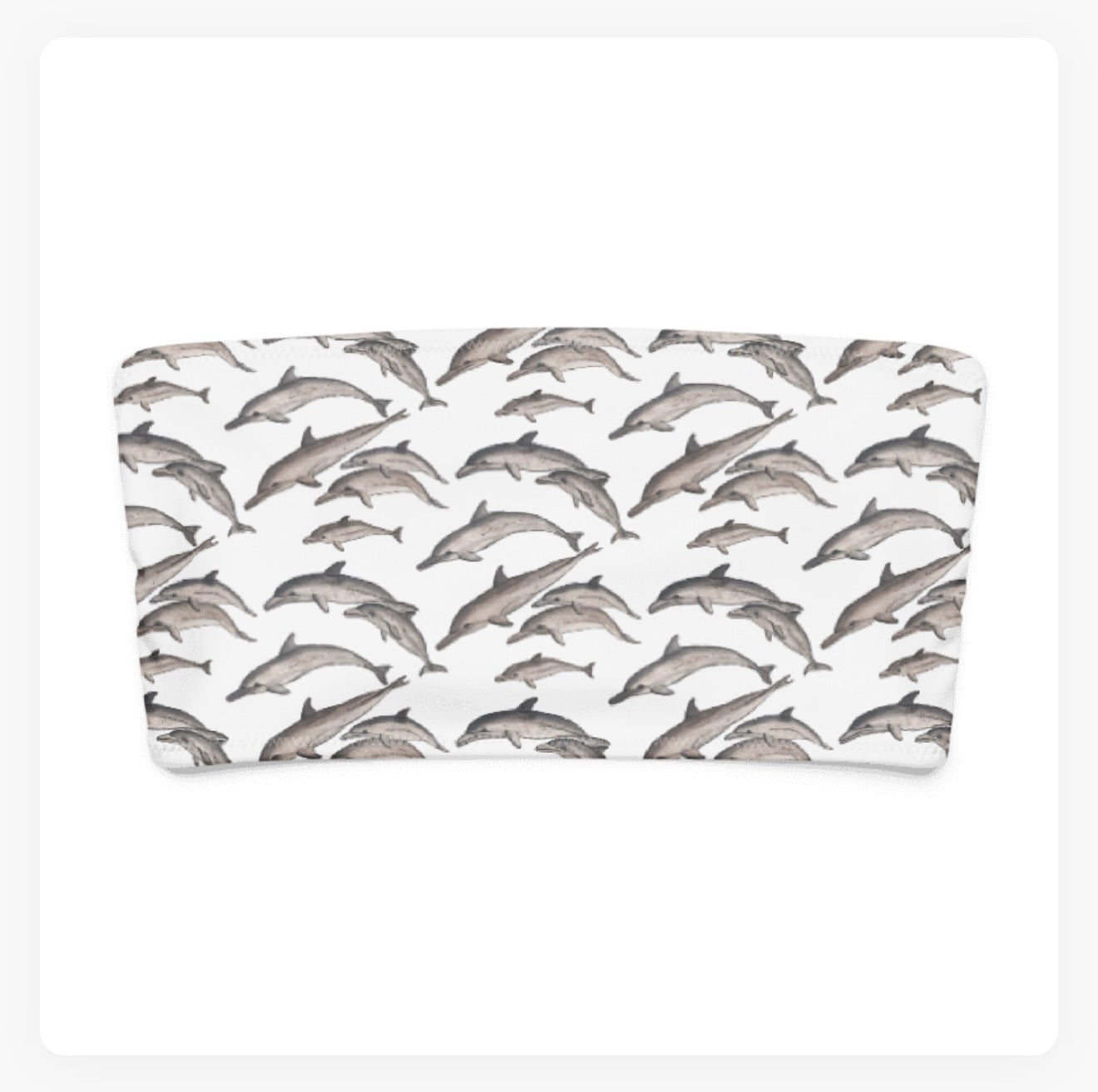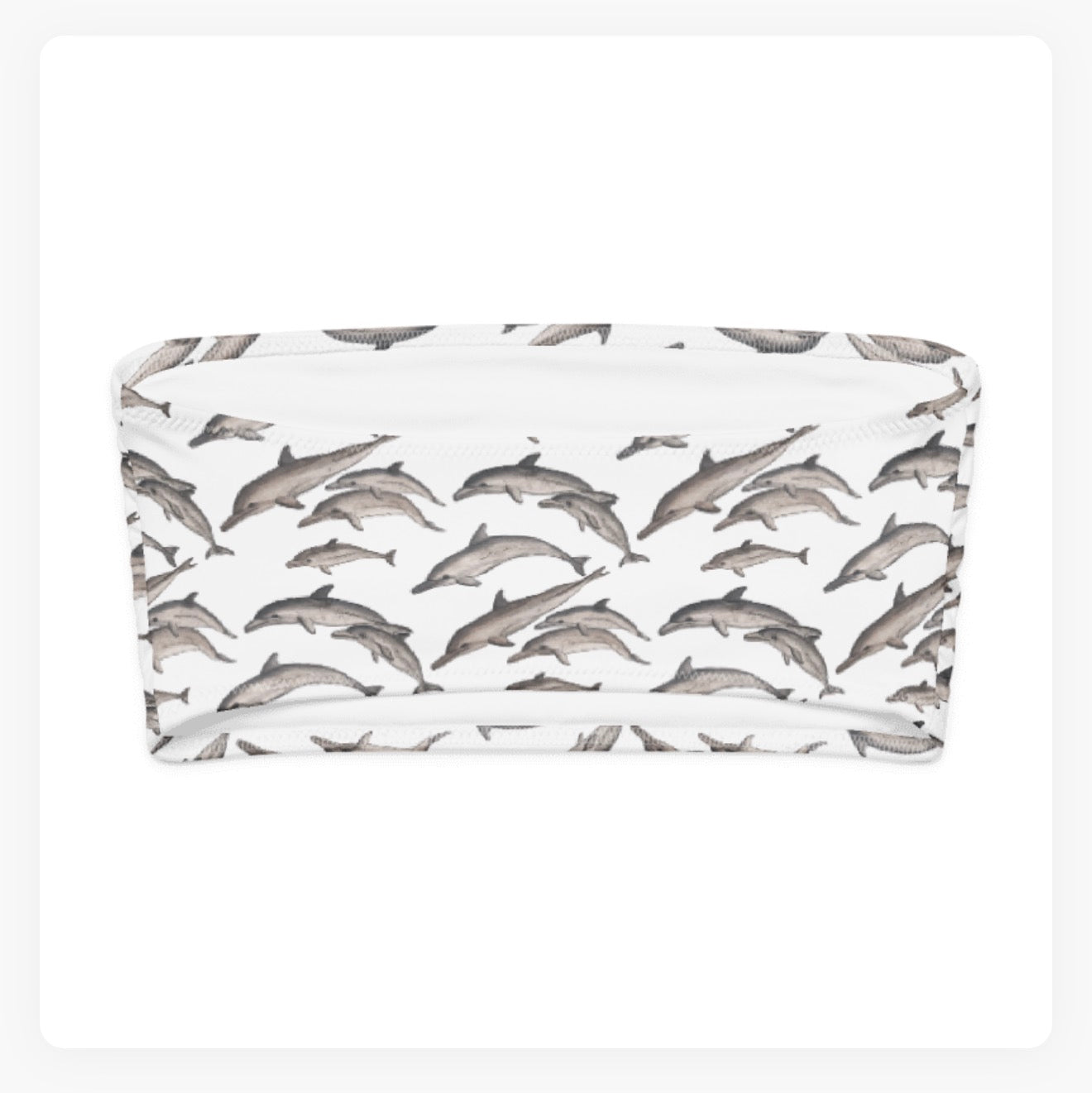 Make a splash with this stunning bandeau bikini top featuring the beautiful dolphin pod designs! Perfect for ocean lovers and adventurers, this swimwear combines comfort, style, and a love for marine life.