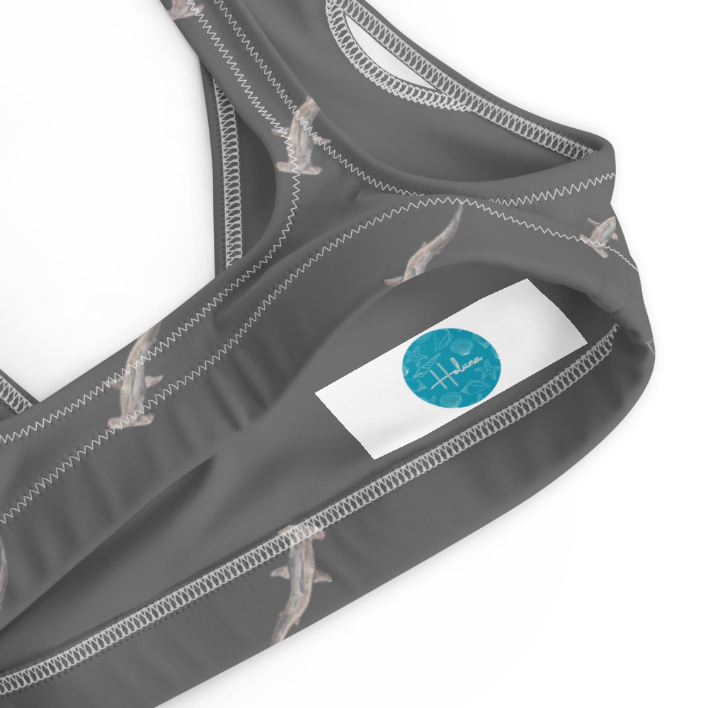 Make a splash with this stunning bikini top featuring playful hammerhead shark designs! Comes in the option of two colours, grey and hot pink. Perfect for ocean lovers and adventurers, this swimwear combines comfort, style, and a love for marine life.