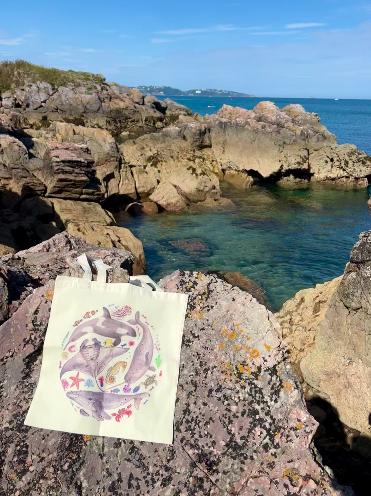 People have been saying for ages you should get your art printed, I’d wear it, I’d love it on a beach bag… well, today is your lucky day because I did it! I am beyond obsessed. Seeing my artwork on a bag is actually giving me life 🩵