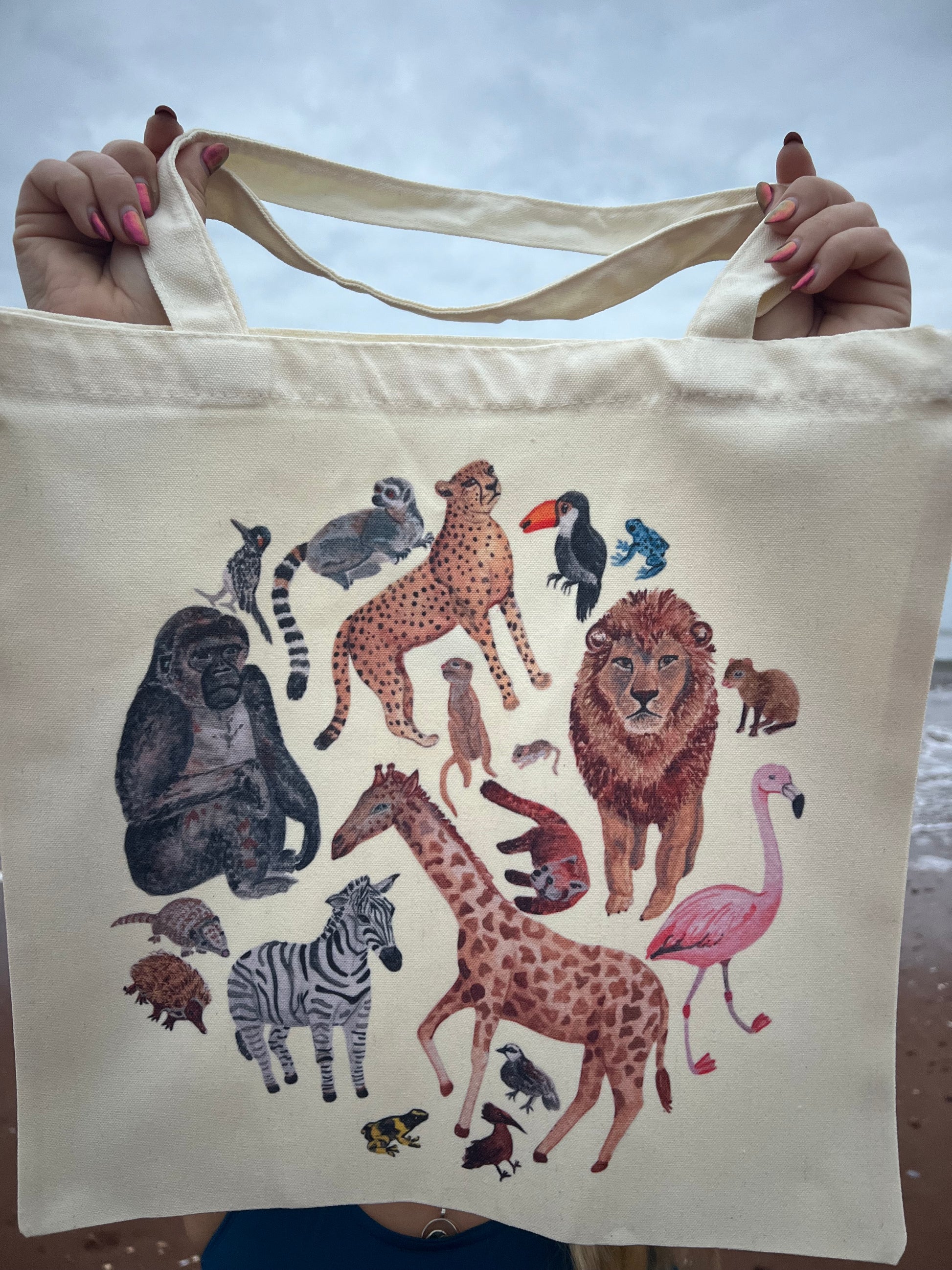People have been saying for ages you should get your art printed, I’d wear it, I’d love it on a beach bag… well, today is your lucky day because I did it! I am beyond obsessed. Seeing my artwork on a bag is actually giving me life 🩵