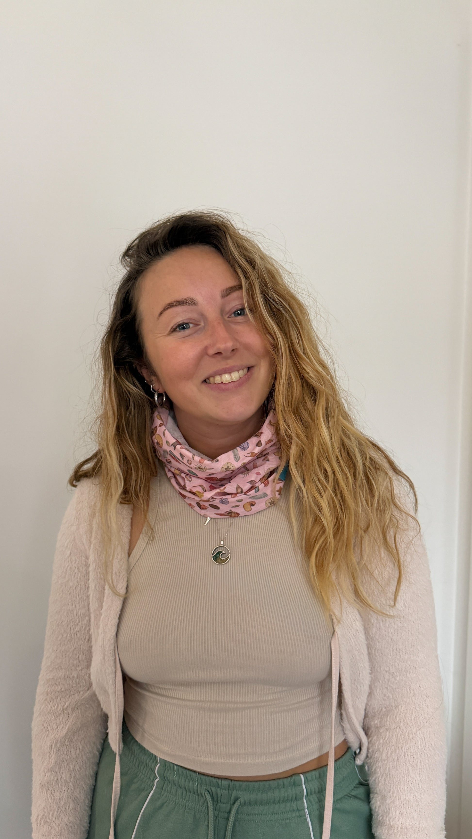 Delicate but durable, this neck scarf is made from 100% RPET polyester, giving new life to recycled materials. Finished in a soft pink seashell print, it’s designed to move easily between everyday wear and outdoor adventures.