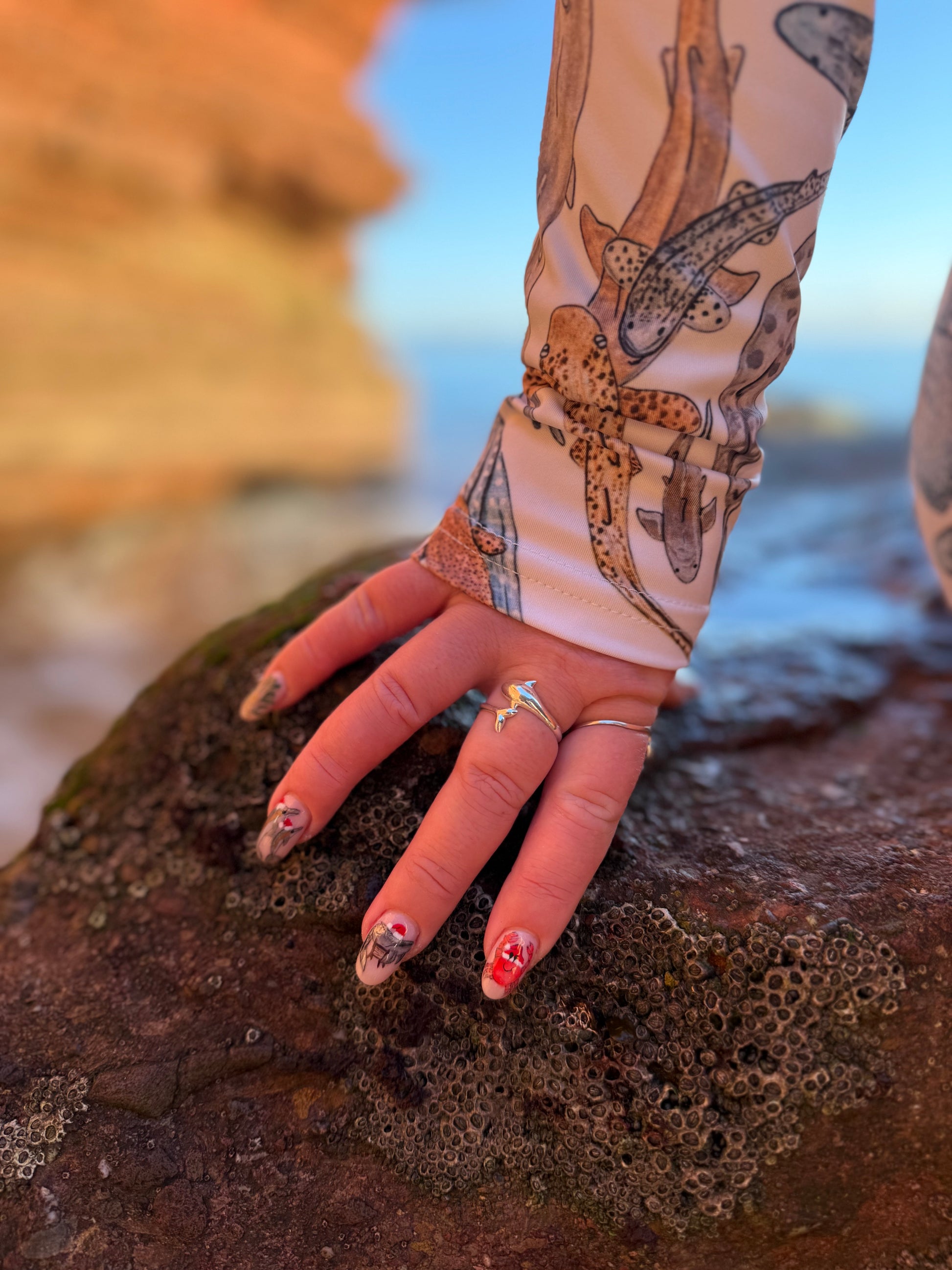 Long sleeve cropped top in Shiver of Sharks