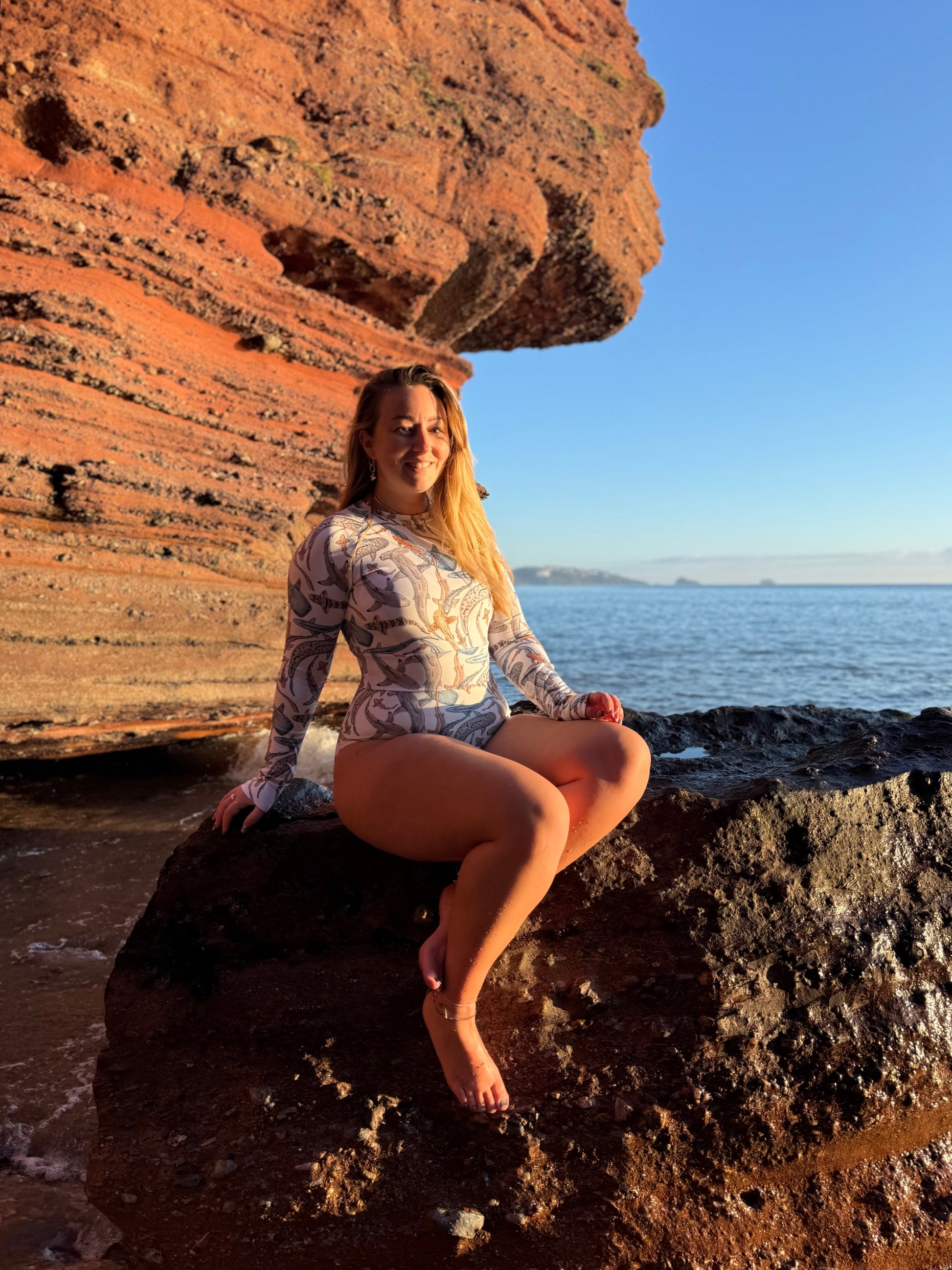 The Recycled Long Sleeve Crop Top is a multifunctional item, fit for athletic wear, swimwear, or streetwear collections. This eco-friendly crop top has a wide, double-layered waistline band for a comfortable fit. Pair it with the High-Waisted Bikini Bottoms or any other bikini bottoms. I also wear mine over the top of my costume!
